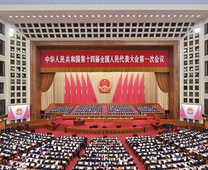 3月7日,十四屆全國(guó)人大一次會(huì)議在北京人民大會(huì)堂舉行第二次全體會(huì)議。受十三屆全國(guó)人大常委會(huì)委托,栗戰(zhàn)書向大會(huì)作全國(guó)人大常委會(huì)工作報(bào)告。