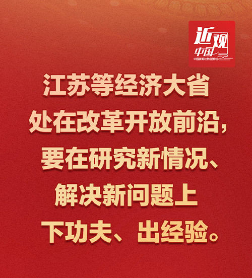 “江蘇等經(jīng)濟(jì)大省處在改革開(kāi)放前沿,要在研究新情況、解決新問(wèn)題上下功夫、出經(jīng)驗(yàn)?!?