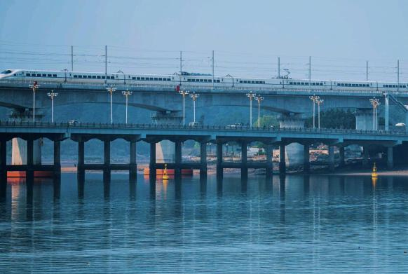 在城市的鋼鐵森林中,高鐵列車宛如一條靈動的銀蛇。它穿梭在高樓大廈之間,與城市的繁華完美相融。(投稿:潘宇)