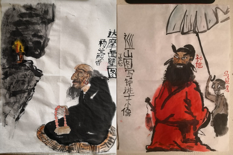 達(dá)摩面壁圖是由于達(dá)摩在中國南方傳教,未能在中國華南地區(qū)留下好印象,后來他幾經(jīng)流浪,終于到達(dá)了少林寺。在被拒絕進(jìn)入及在短時間內(nèi)被驅(qū)逐后,他住在少林寺附近的一個山洞里,在那里他“面對墻壁九年,一直不說話”。最終他在石頭上印上了自己的倒影,并領(lǐng)悟了佛教的真諦,創(chuàng)建了禪宗。