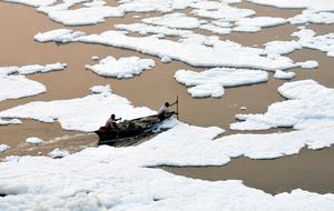 印度亞穆納河現(xiàn)有毒白色泡沫