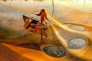 漁民撒網(wǎng)捕魚(yú)畫(huà)面綺麗