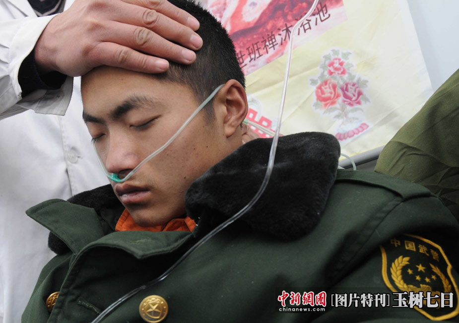 4月18日清晨,玉樹(shù)昨夜寒風(fēng)冰雹使地震災(zāi)區(qū)雪上加霜。部分救援人員出現(xiàn)嚴(yán)重高原反應(yīng)。中新社發(fā) 賈國(guó)榮 攝