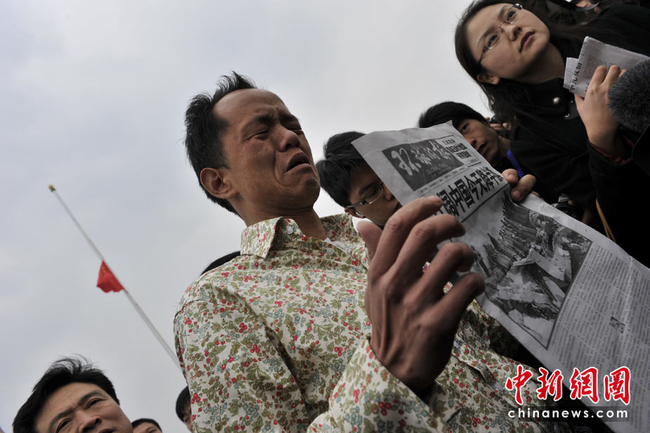 4月21日,為表達全國各族人民對青海玉樹地震遇難同胞的深切哀悼,中國國務(wù)院決定,舉行全國哀悼活動,全國和駐外使領(lǐng)館下半旗志哀,停止公共娛樂活動。圖為北京天安門廣場上哀悼遇難者的民眾。中新網(wǎng)記者 金碩 攝