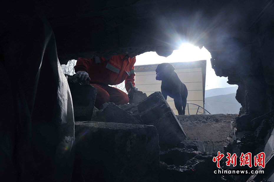 名貴的黑貝犬是中國國家救援隊(duì)趕赴青海玉樹地震災(zāi)區(qū)6只搜救犬隊(duì)成員之一,身價(jià)近百萬元人民幣。4月21日清晨八時(shí)許,它在救援隊(duì)員的帶領(lǐng)下,到玉樹地震災(zāi)區(qū)中心商業(yè)街廢墟里,四處奔波,盡職盡力尋找生命跡象。10時(shí)后,他和救援隊(duì)員都出現(xiàn)高原反應(yīng),暫時(shí)休整,準(zhǔn)備再戰(zhàn)。賈國榮 攝